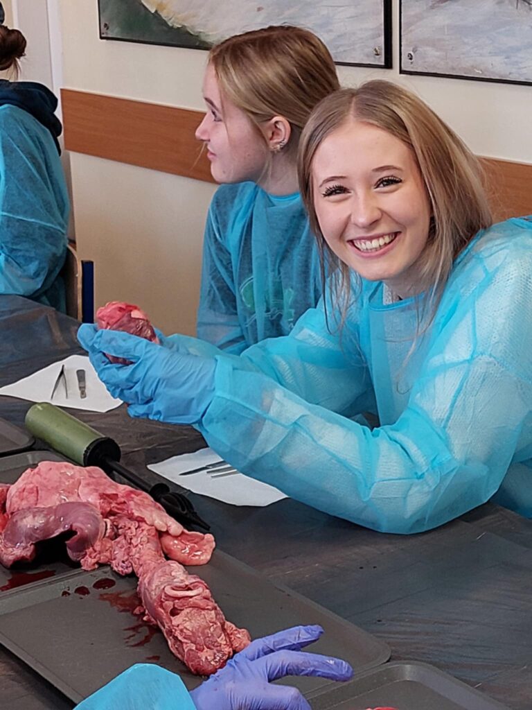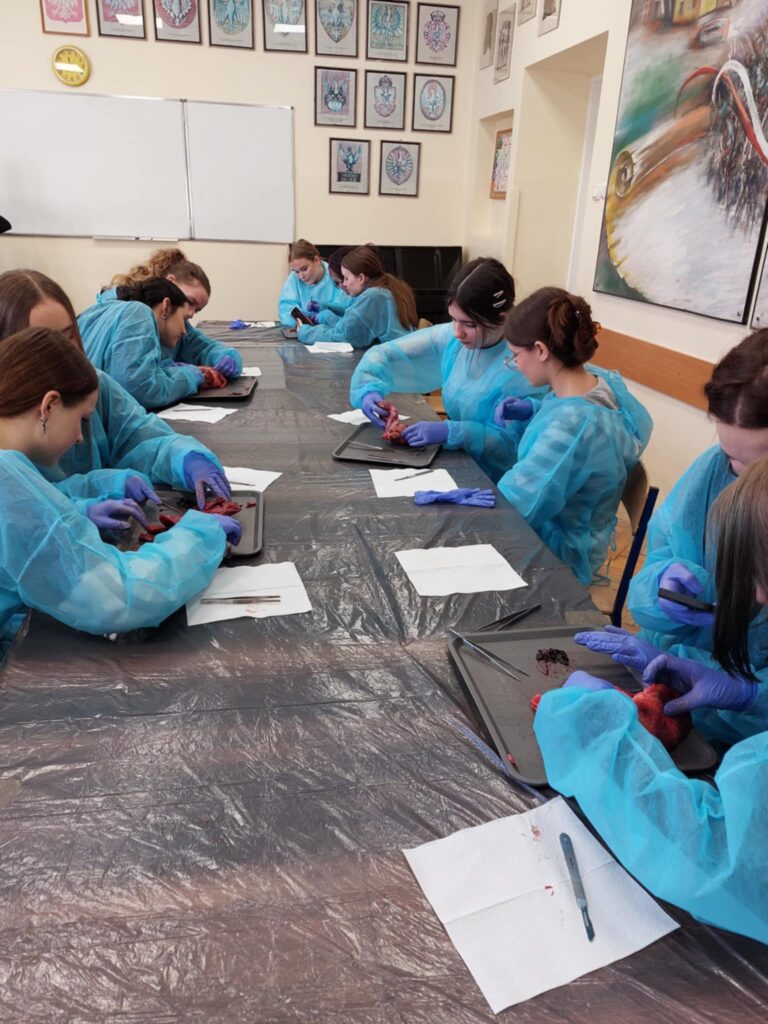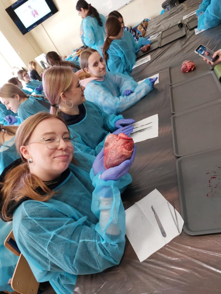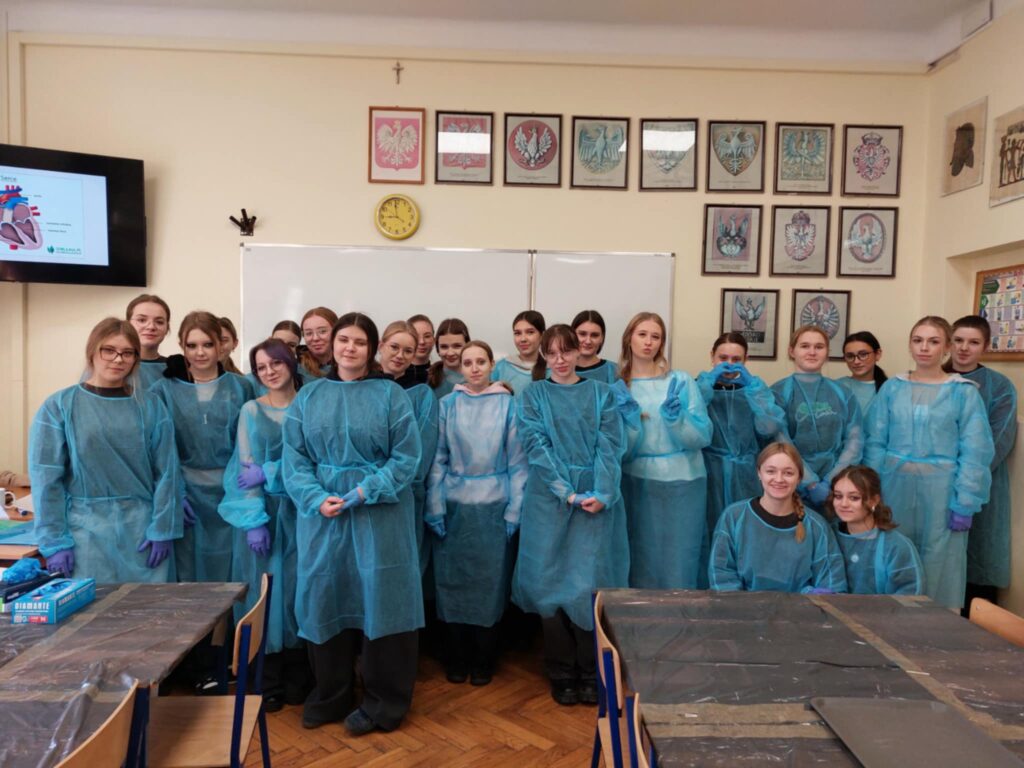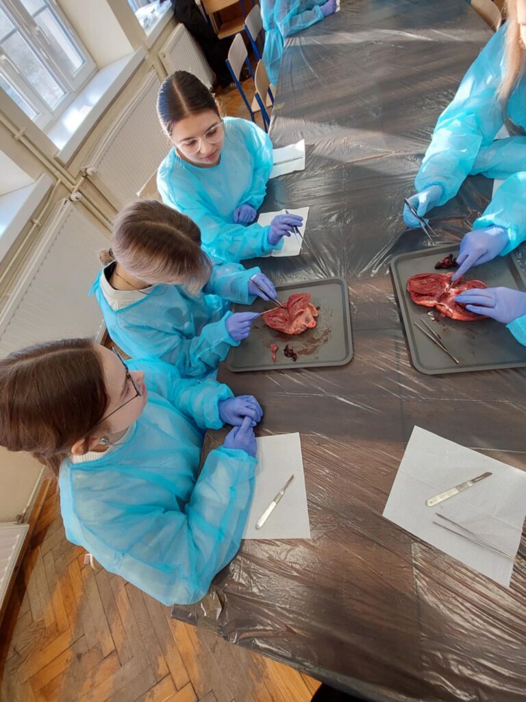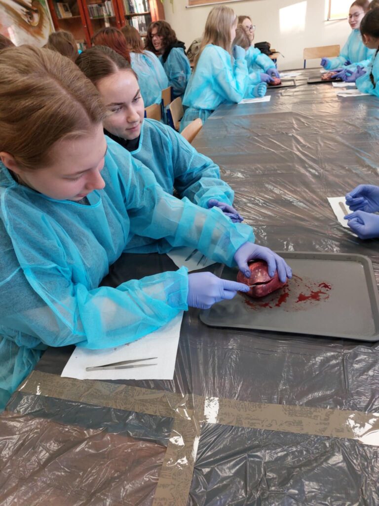 Uczniowie starszych klas, którzy realizują biologię w zakresie rozszerzonym wzięli udział w fascynujących warsztatach anatomicznych. To była idealna okazja, by wyjść poza podręcznik i zamienić teorię w prawdziwe doświadczenie. Podczas zajęć młodzi biolodzy mogli z bliska poznać budowę serca, a najbardziej dociekliwi zgłębili również anatomię dolnych dróg oddechowych. Każdy etap warsztatów pozwalał im sprawdzić w praktyce to, czego uczyli się na lekcjach, dzięki czemu trudniejsze zagadnienia stały się bardziej zrozumiałe i namacalne. To właśnie takie momenty pokazują, jak inspirująca potrafi być nauka, gdy teoria spotyka się z praktyką.