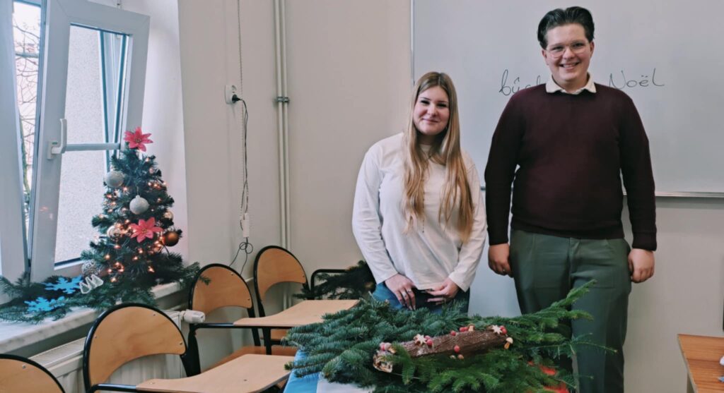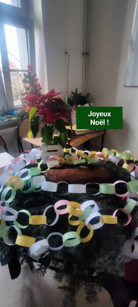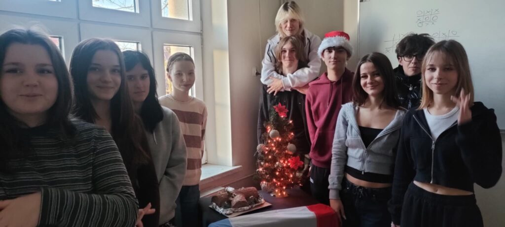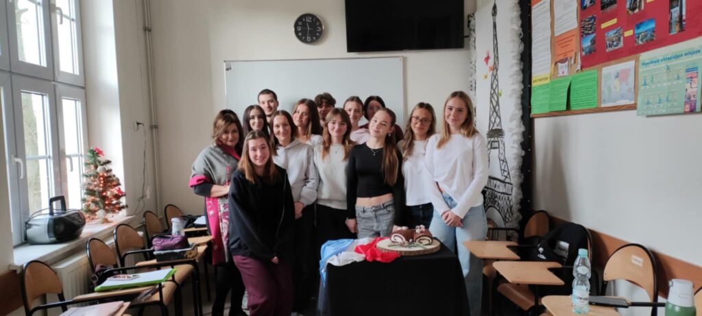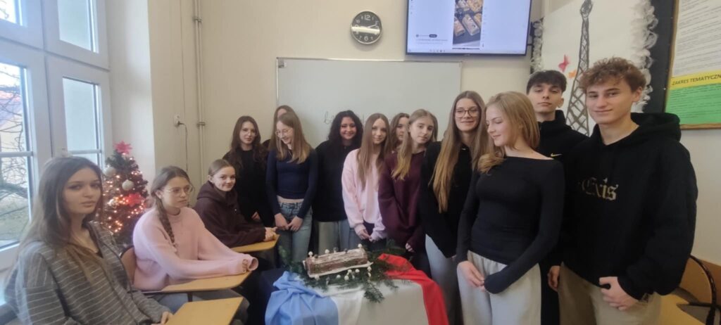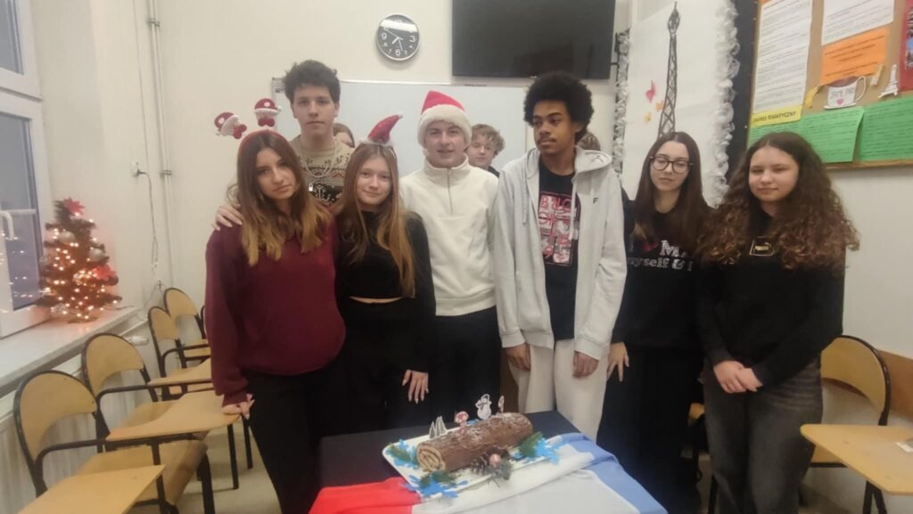 Lekcje języka francuskiego odbyły się w wyjątkowej, świątecznej atmosferze. Uczniowie w ciekawy sposób poznawali francuskie zwyczaje i tradycje bożonarodzeniowe oraz mieli okazję spróbować tradycyjnego ciasta bûche de Noël, łącząc naukę języka z odkrywaniem kultury Francji. Znajomość kultury i realiów życia codziennego jest niezbędna do kształtowania i rozwijania interkulturowej kompetencji komunikacyjnej.