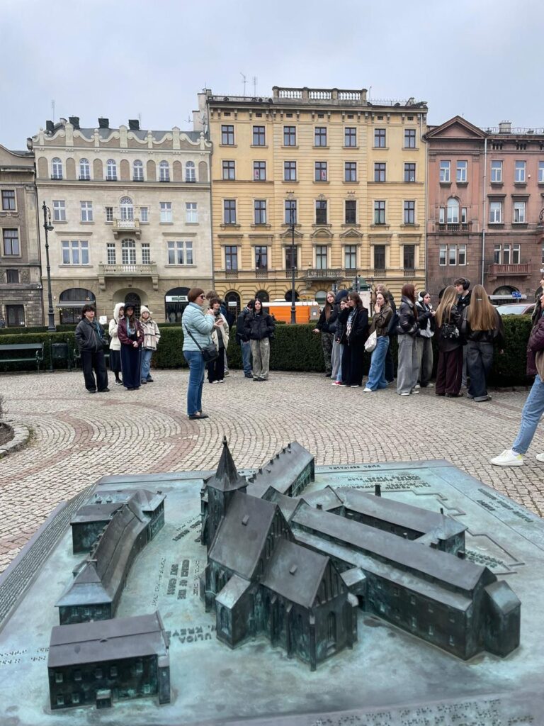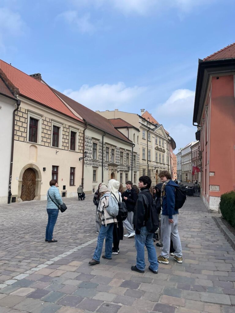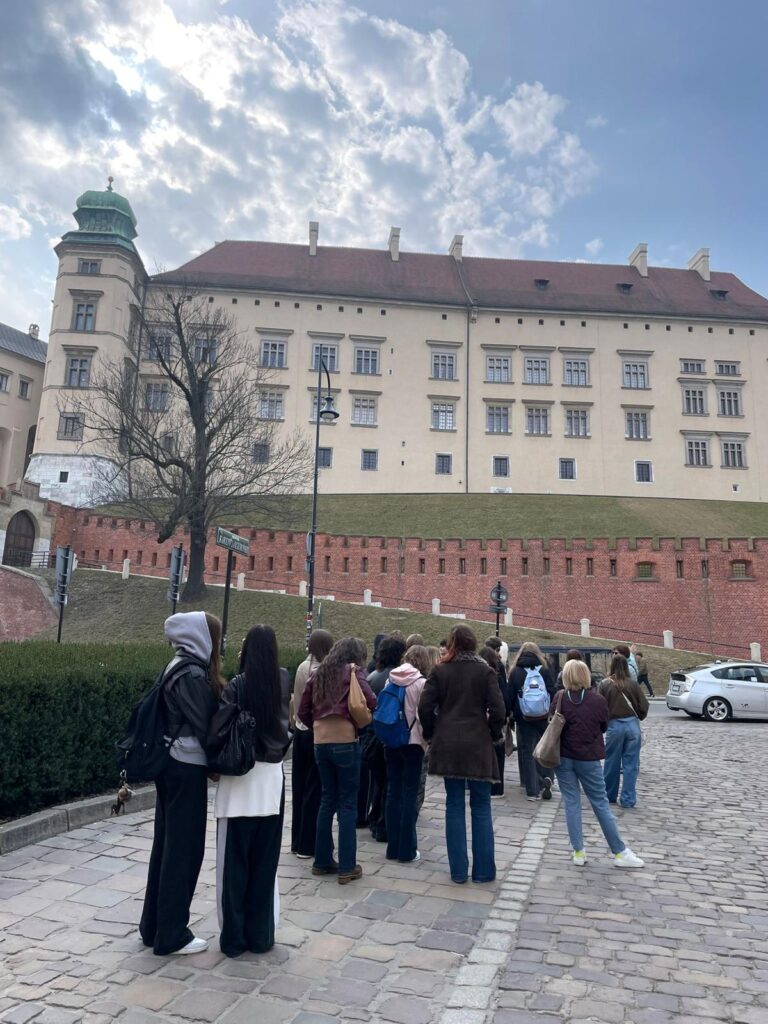 16 marca uczniowie klasy 3c wzięli udział w wycieczce edukacyjnej do Krakowa, podczas której poznawali miasto szlakiem Młodej Polski – epoki pełnej artystycznych eksperymentów, literackiej wrażliwości i społecznych przemian. Spacer po historycznych ulicach Krakowa odbywał się pod opieką pani przewodnik, która w sposób żywy i barwny przybliżała młodzieży sylwetki najważniejszych twórców tego okresu, takich jak Stanisław Wyspiański czy Kazimierz Przerwa-Tetmajer. Uczniowie mieli okazję wysłuchać fascynujących historii związanych z życiem i twórczością tych artystów, a także poznać okoliczności powstania jednego z najważniejszych dramatów polskiej literatury – Wesele. Jej relacje pozwoliły młodzieży wnikliwiej zrozumieć nie tylko ducha epoki, lecz także mentalność, obyczaje i codzienne życie ówczesnego krakowskiego społeczeństwa.