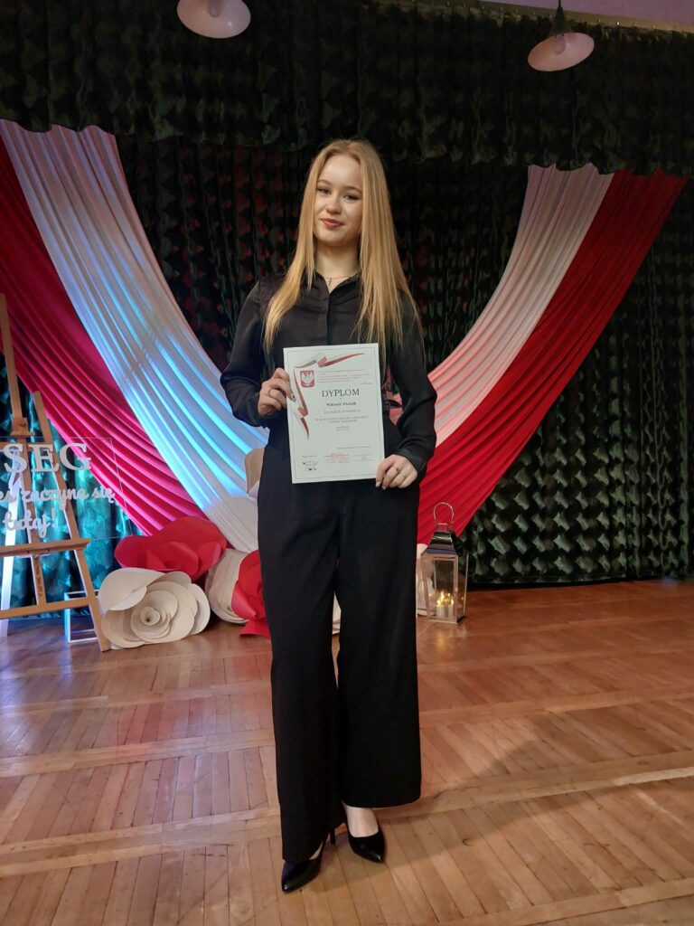 Kategoria „Recytacja” III miejsce zdobyła Wiktoria Ptaśnik z klasy 3b za interpretację wiersza „Ktokolwiek jesteś bez ojczyzny” autorstwa Kazimierza Wierzyńskiego